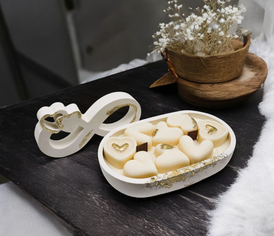 Naczynia na świece z Jesmonite mogą mieć matowe lub polerowane wykończenie, a także być zdobione metalicznymi akcentami. Są idealne dla osób, które cenią sobie stylowe i ekskluzywne dodatki.